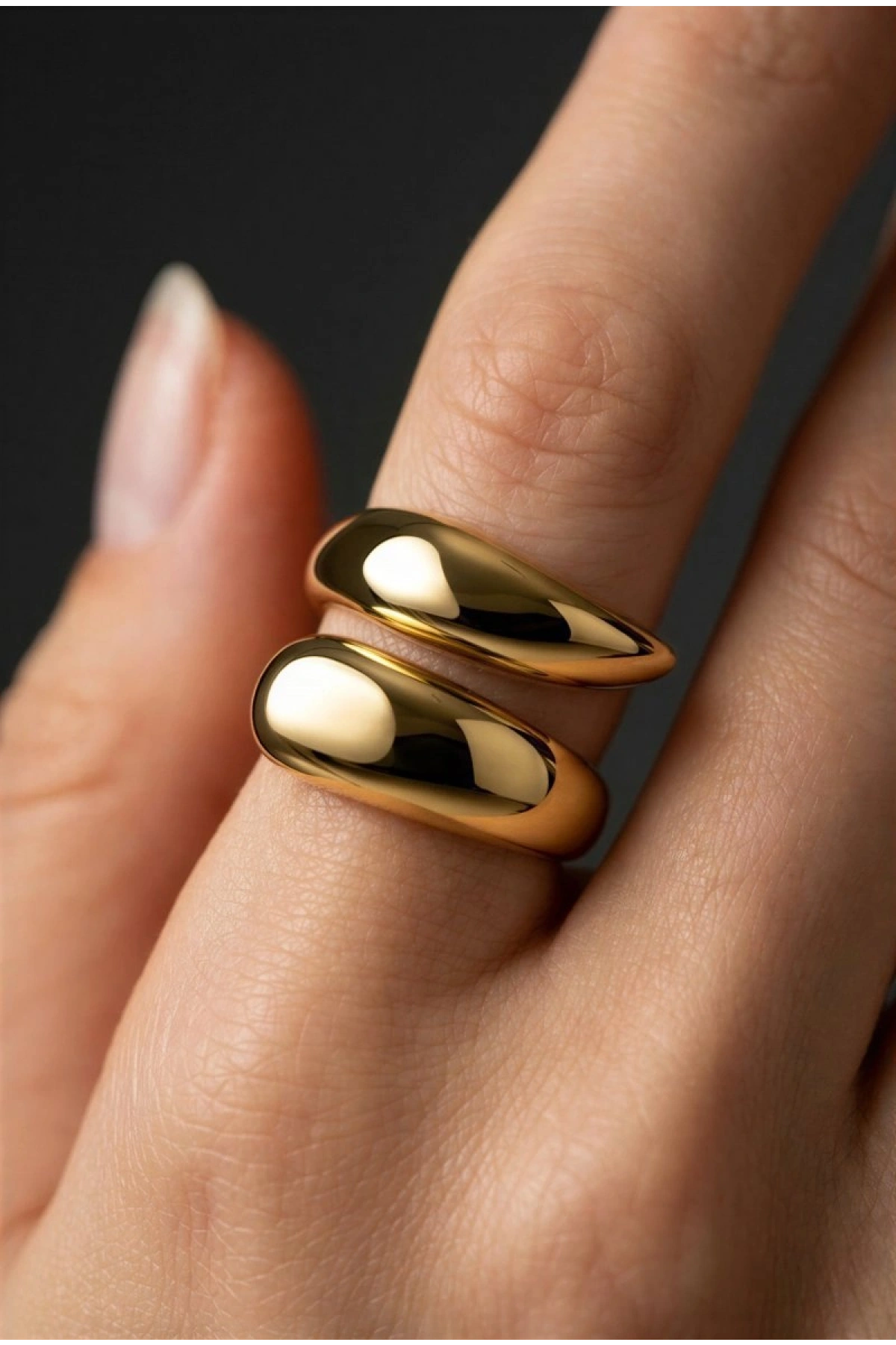 Sivri Damla Model Gold Altın Kaplama Ayarlanabilir Çelik Yüzük