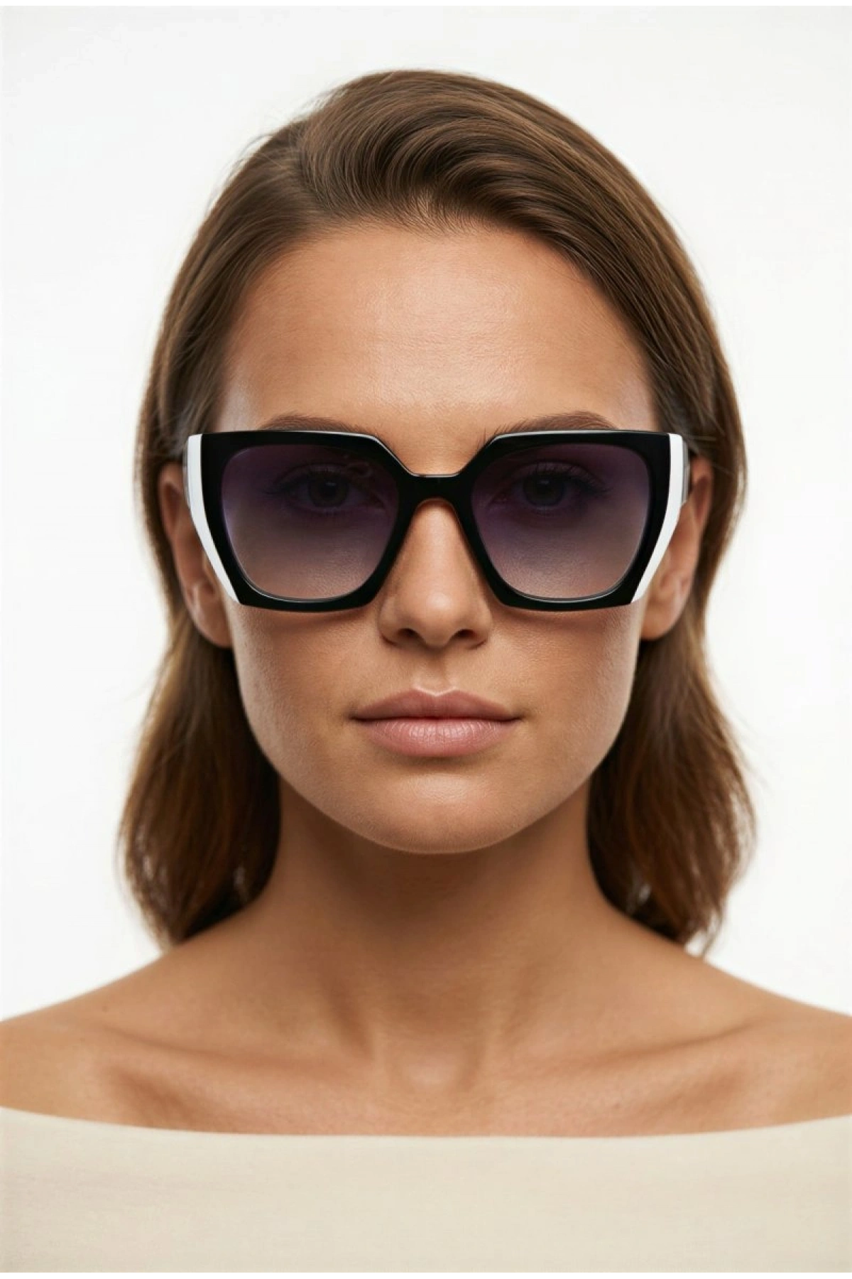 Siyah Beyaz Model Kadın Güneş Gözlüğü