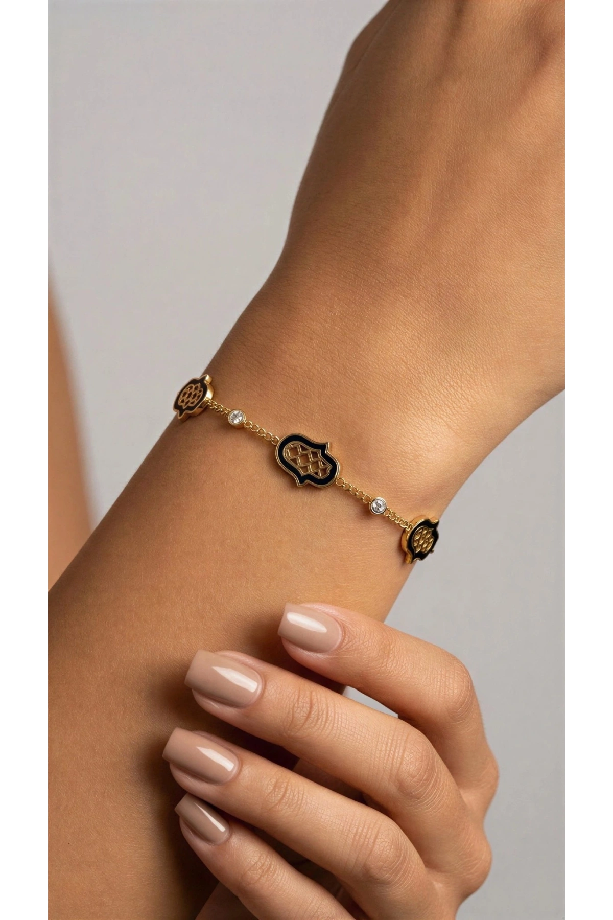 Siyah Fatıma Model Gold Altın Kaplama Çelik Bileklik