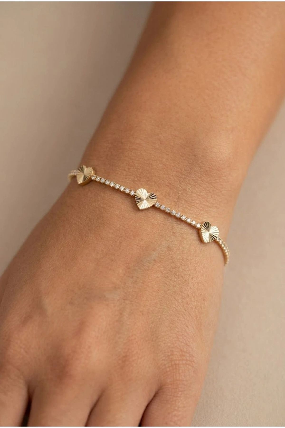 Su Yolu Model Çizgili Kalp Detay Gold Altın Kaplama Bileklik