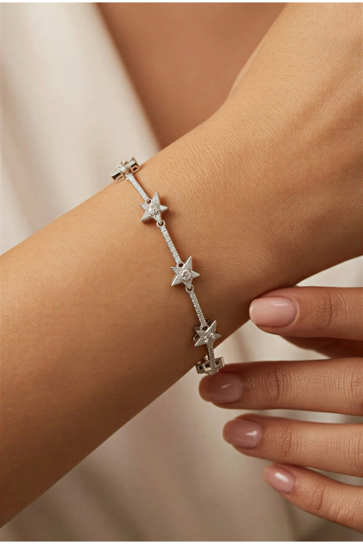 Su Yolu Model Yıldız Detay Beyaz Altın Kaplama Bileklik