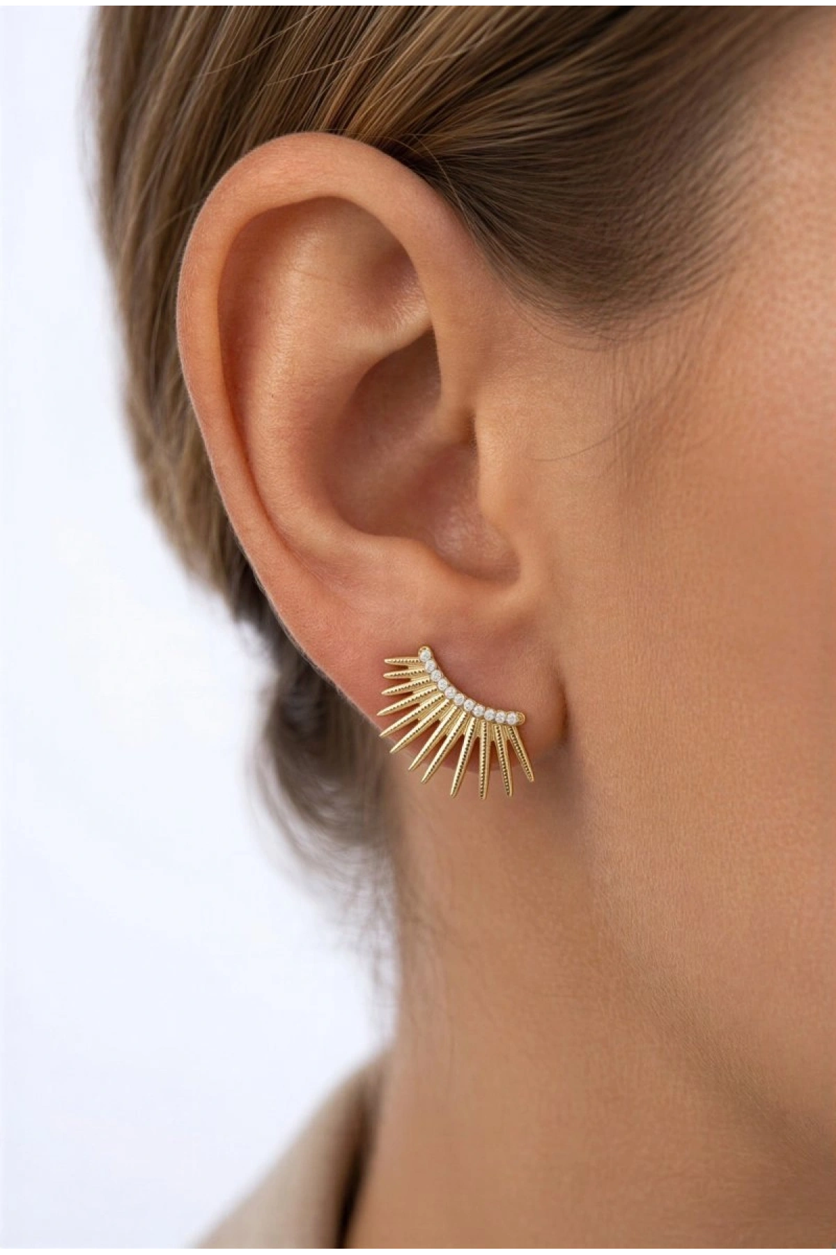 Taç Model Gold Altın Kaplama Küpe