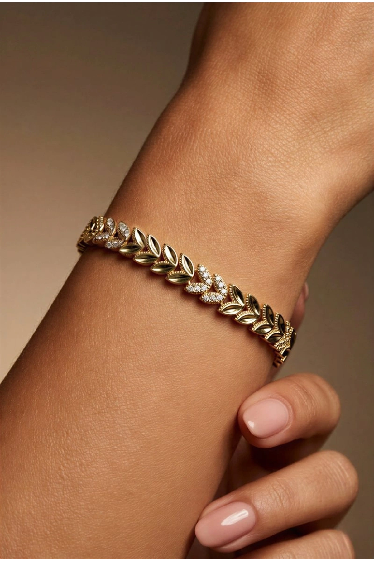 Taş Detay Başak Model Gold Altın Kaplama Bileklik