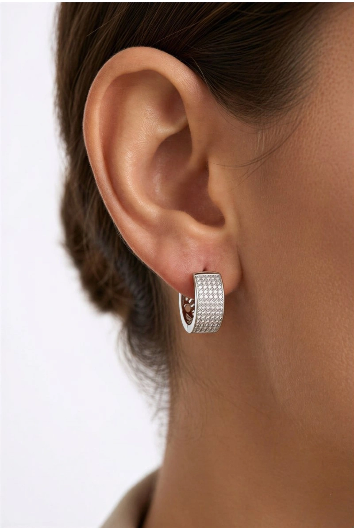 Taş Detay Beyaz Altın Kaplama Küpe