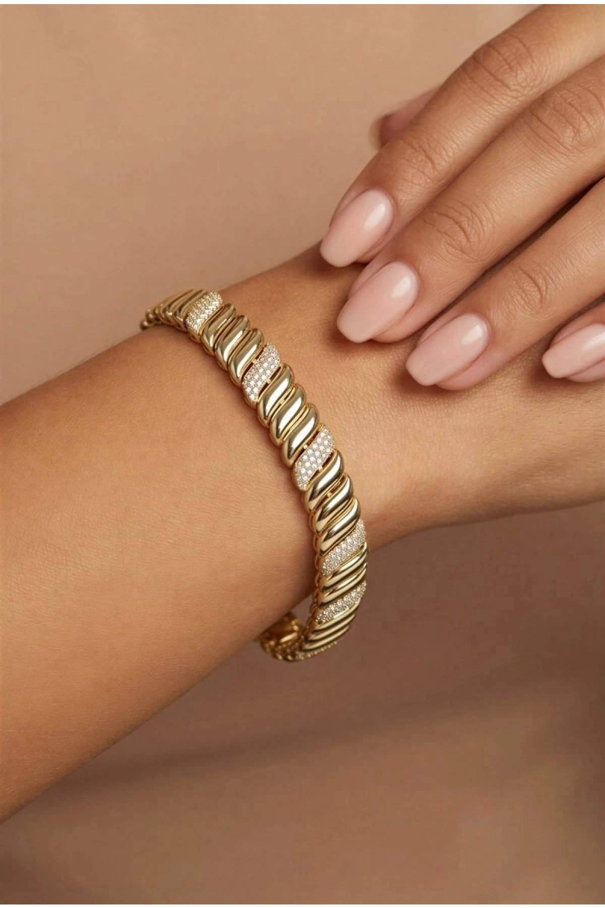 Taş Detay Dalga Model Gold Altın Kaplama Bileklik