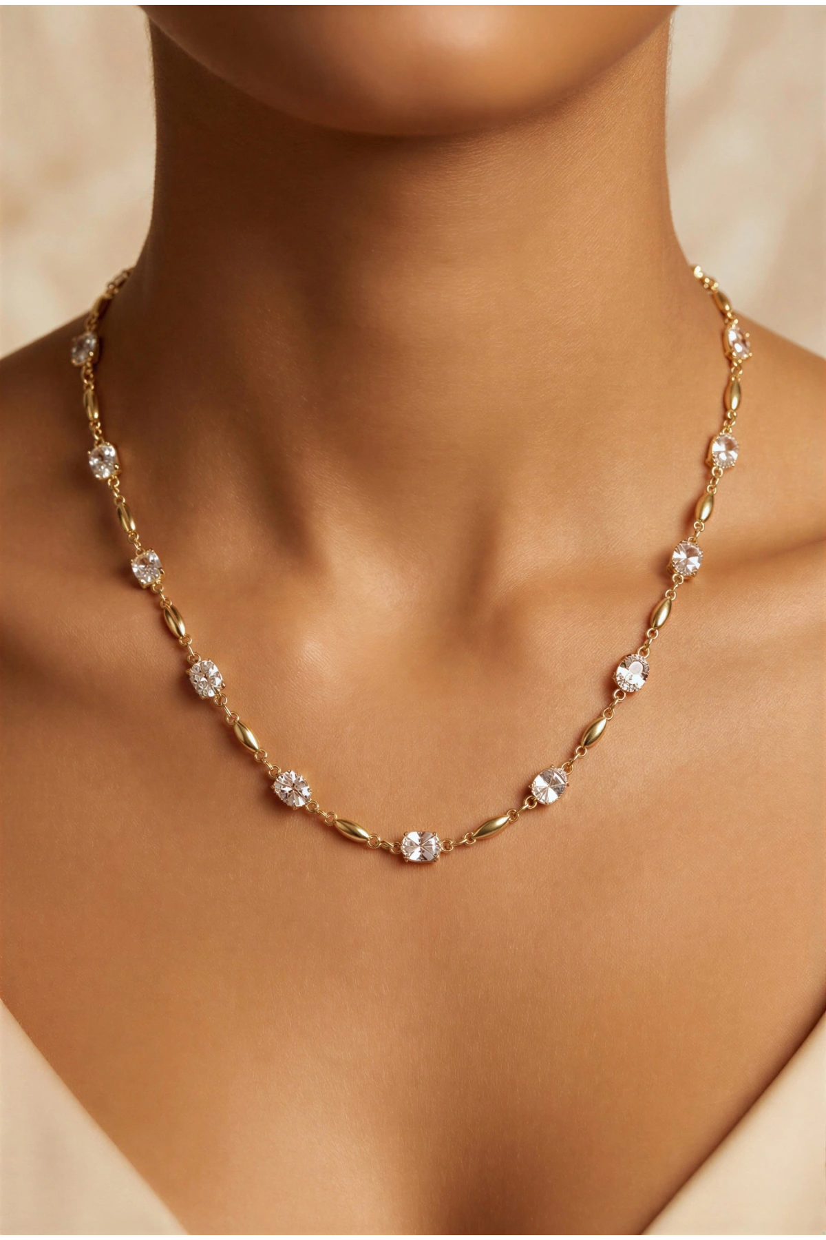 Taş Detay Elips Model Gold Altın Kaplama Kolye