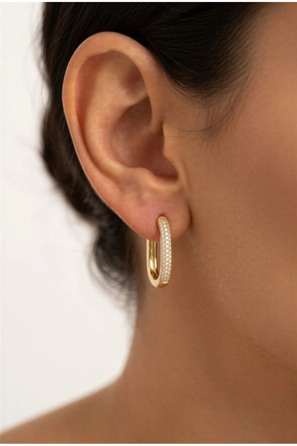 Taş Detay Elips Model Gold Altın Kaplama Küpe