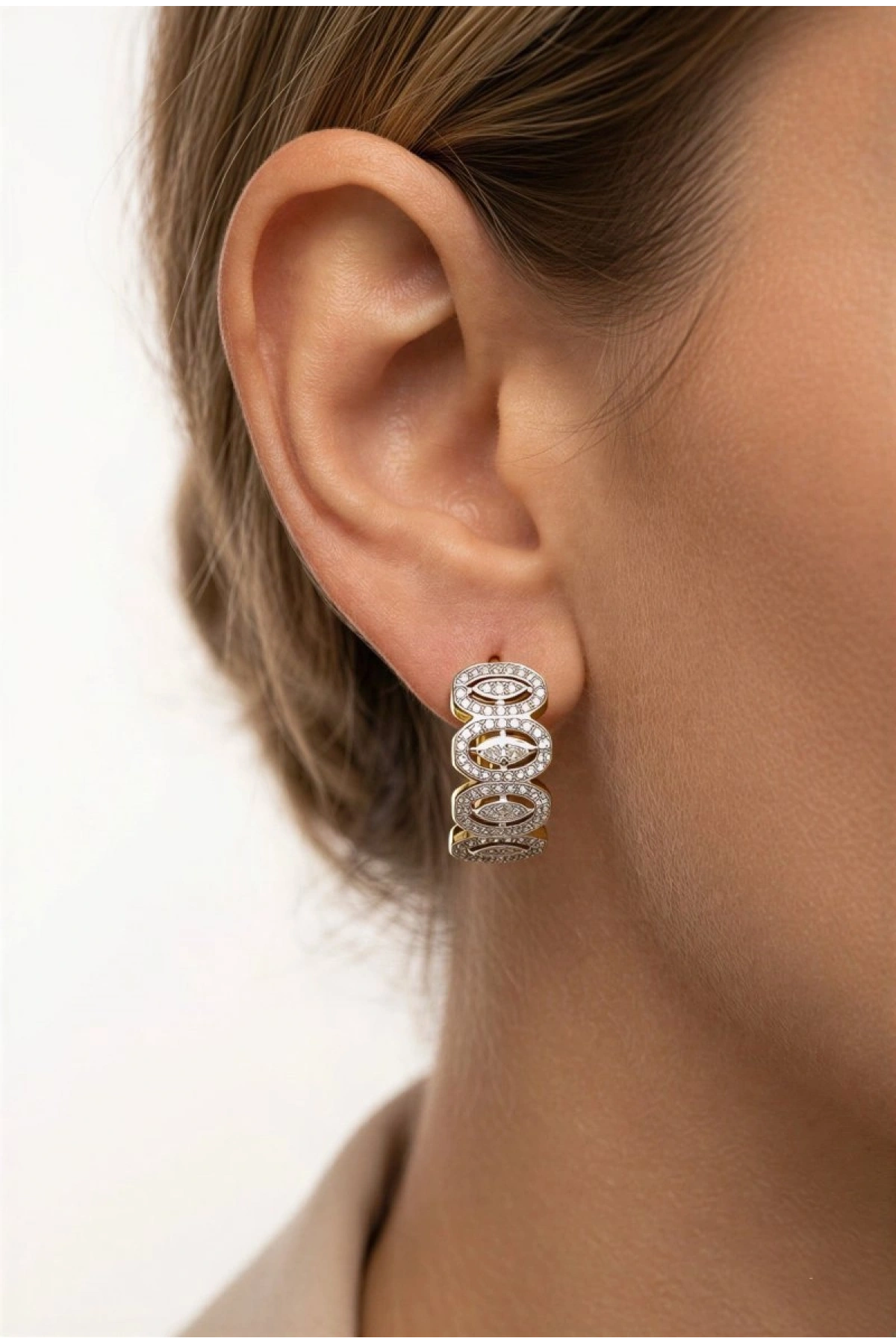 Taş Detay Elips Model Gold Altın Kaplama Küpe