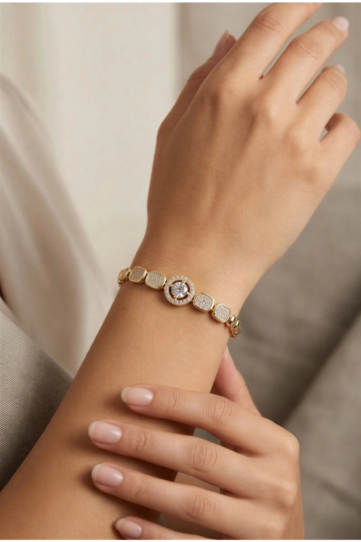 Taş Detay Pusula Model Gold Altın Kaplama Bileklik