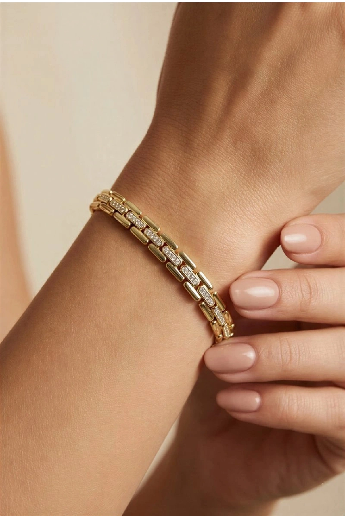 Taş Detay Ray Model Gold Altın Kaplama Bileklik