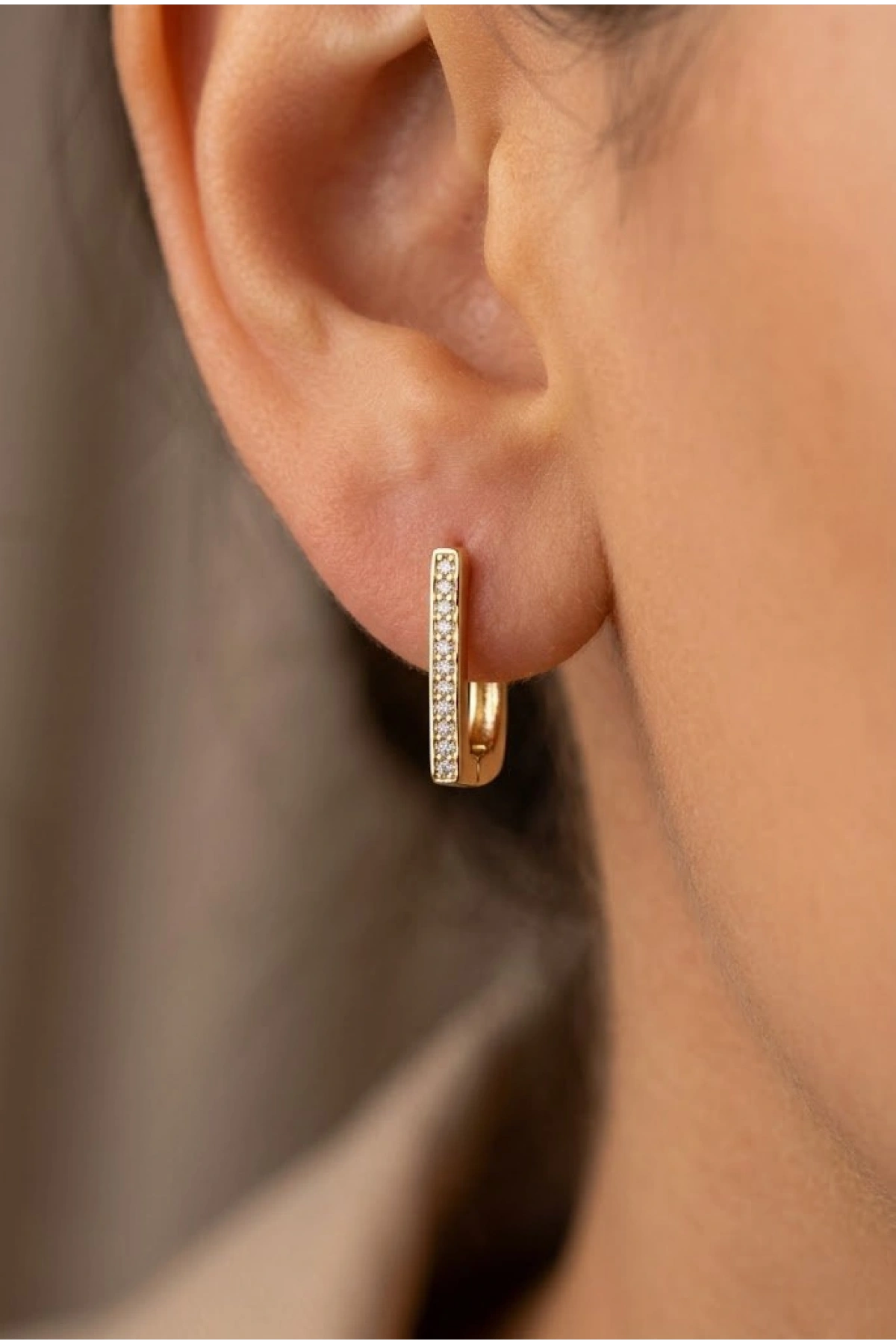 Taşlı Dikdörtgen Model Gold Altın Kaplama Küpe