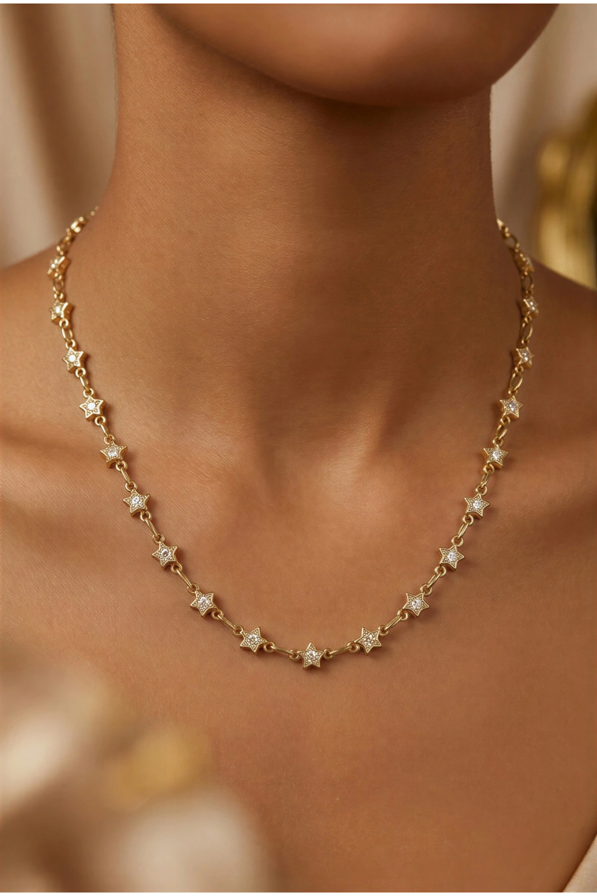 Taşlı Yıldız Model Gold Altın Kaplama Kolye
