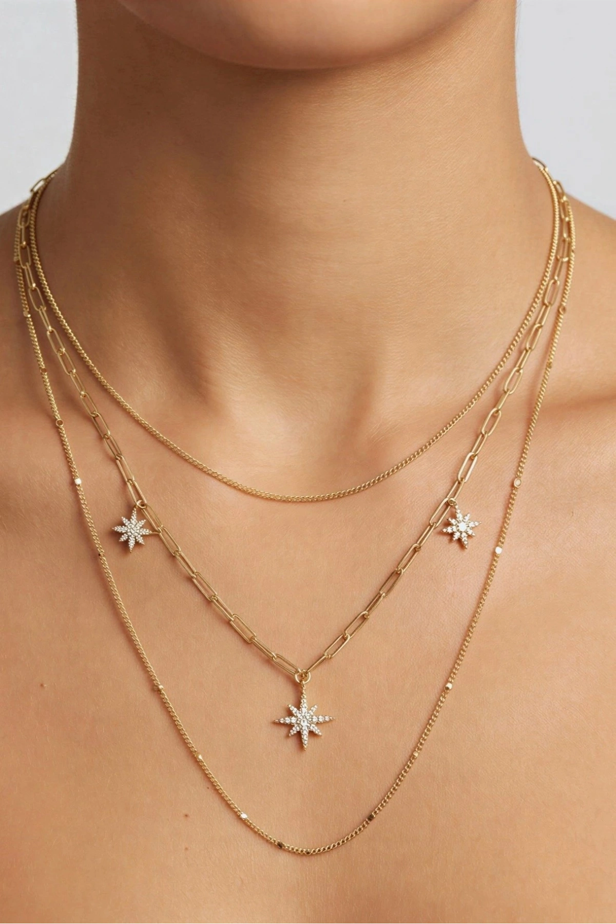 Taşlı Yıldız Model Gold Altın Kaplama Üçlü Kolye