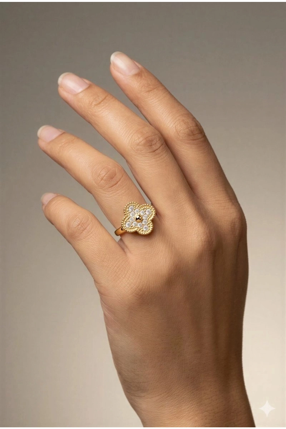 Taşlı Yonca Model Gold Altın Kaplama Yüzük