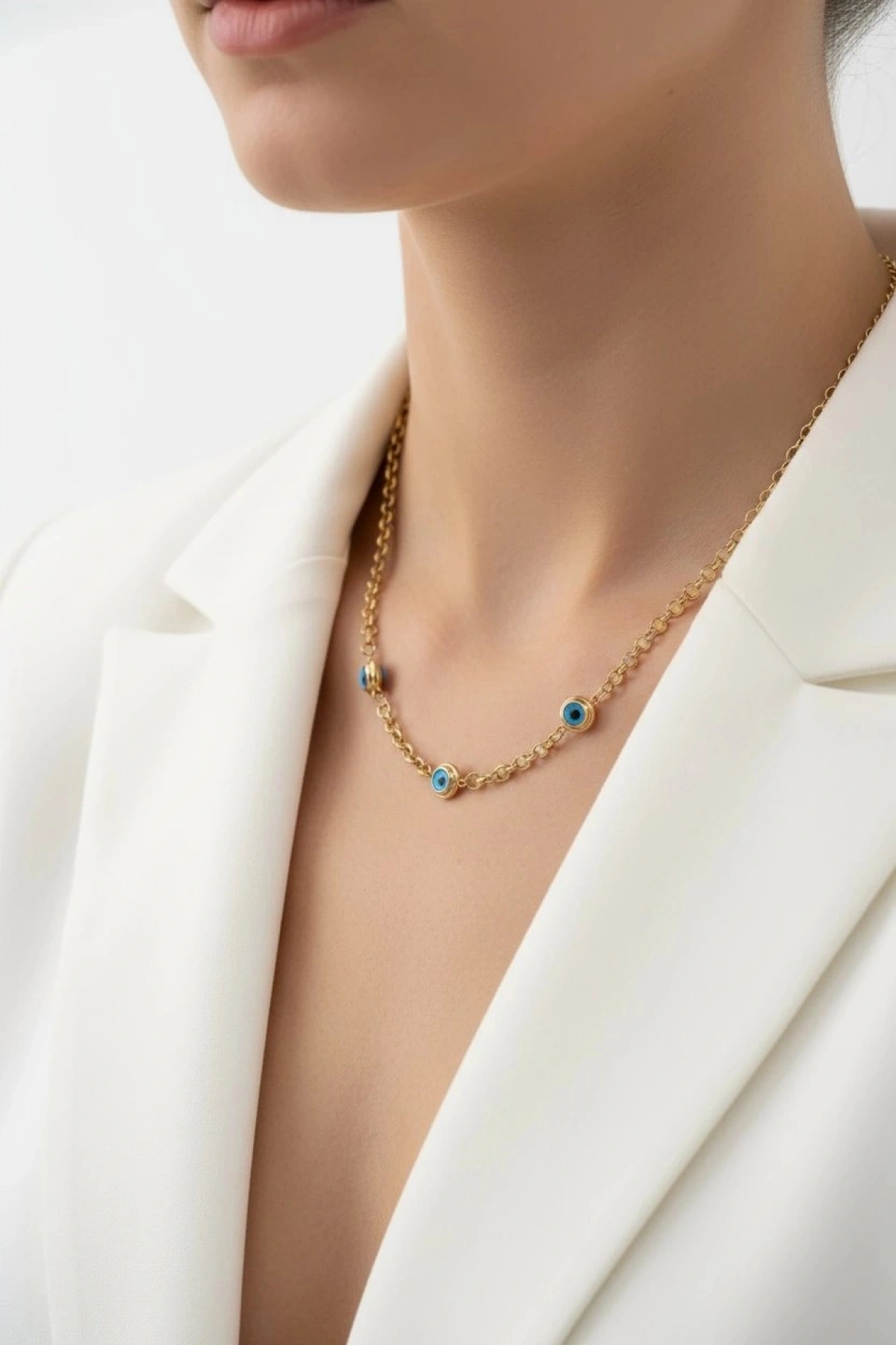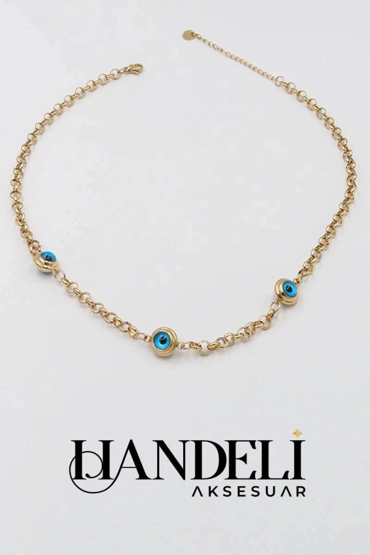 Üç Göz Geçme Halka Gol Altın Kaplama Çelik Kolye