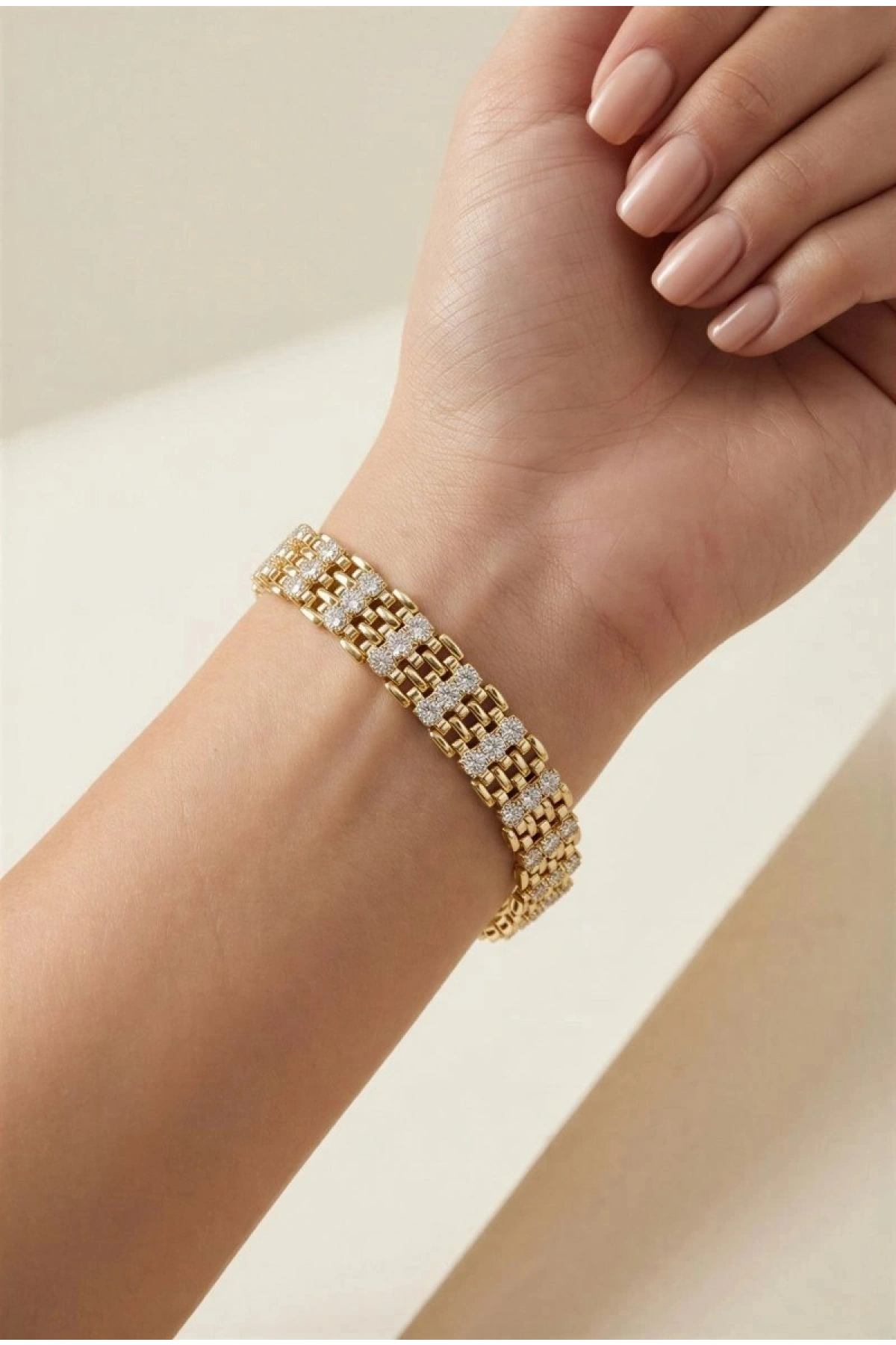 Üç Sıra Taş Detay Gold Altın Kaplama Bileklik