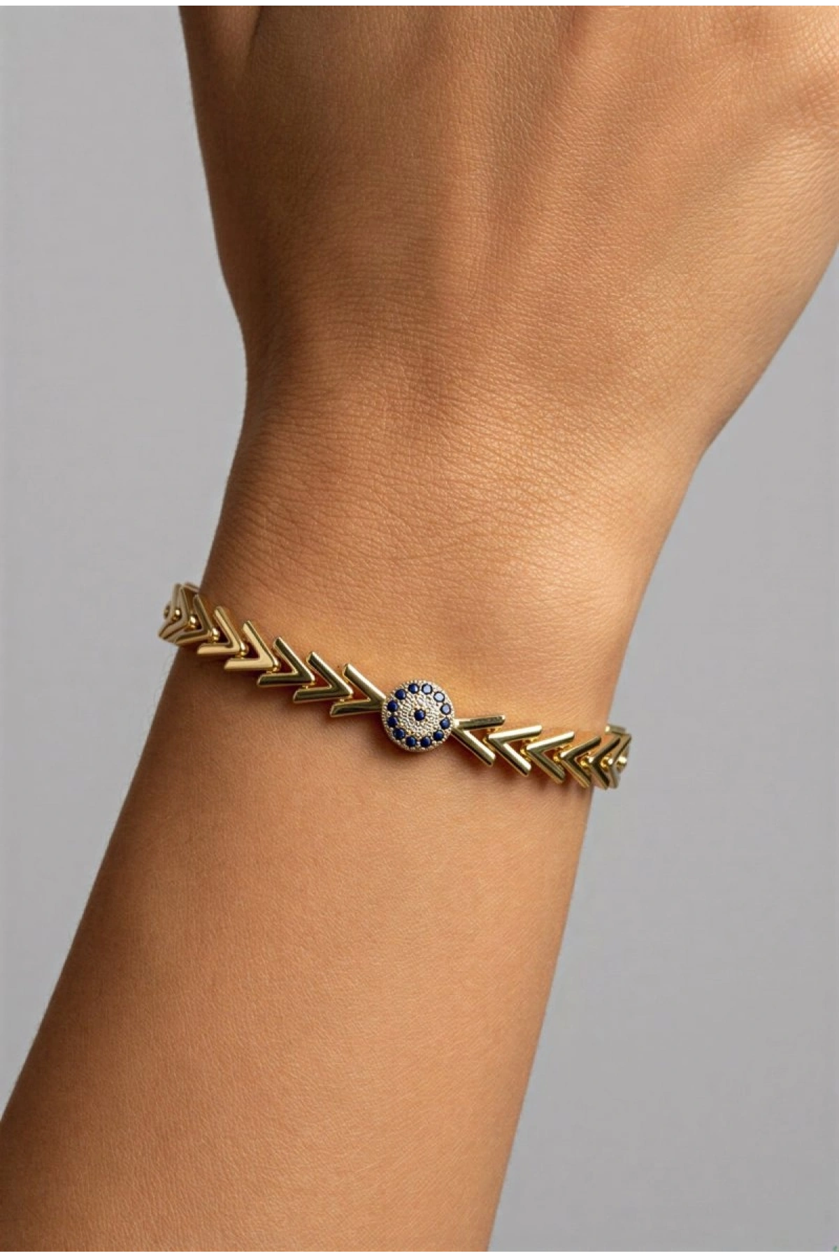 Üçgen Zincir Nazar Boncuğu Model Gold Altın Kaplama Bileklik