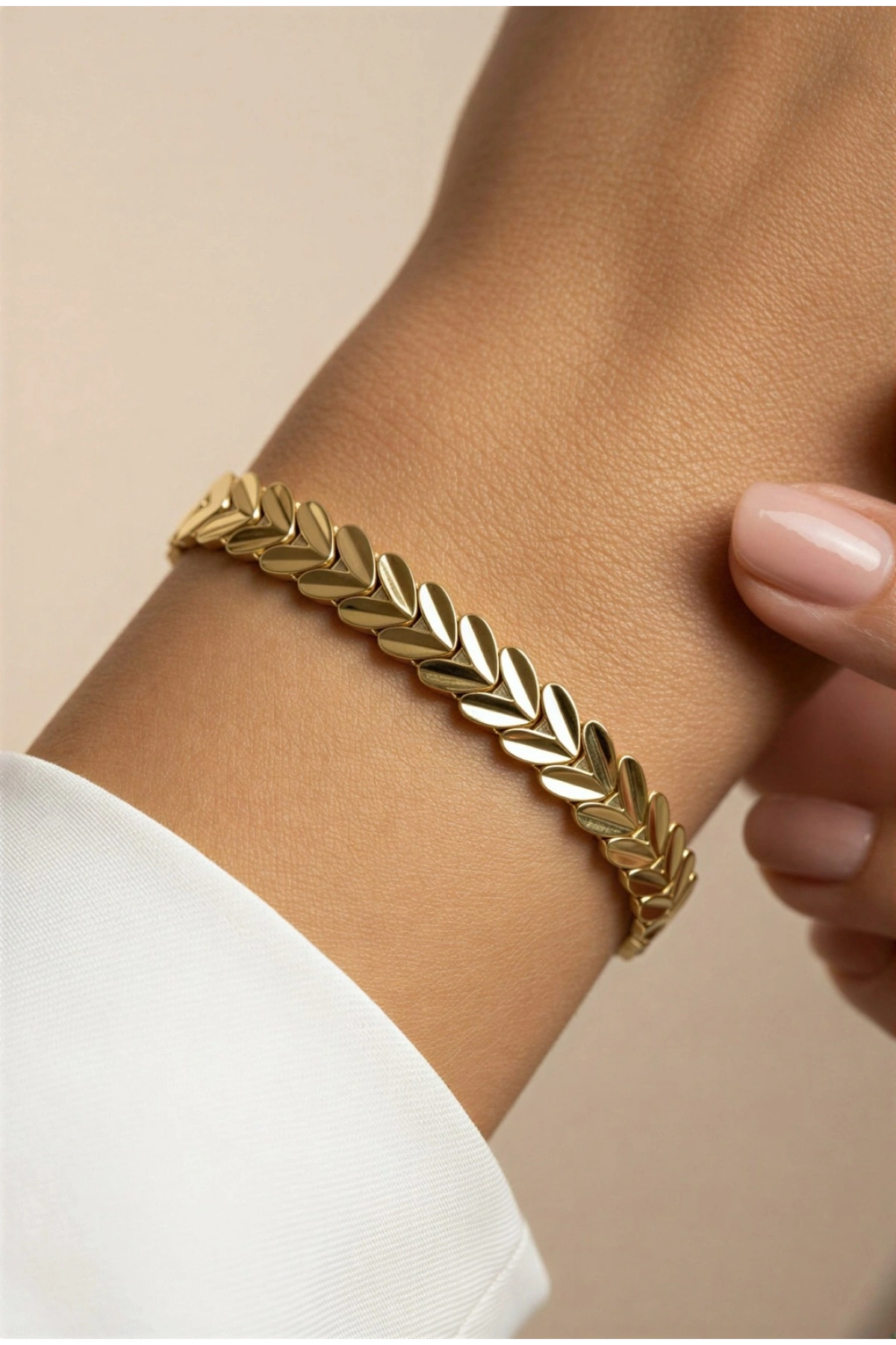 Yaprak Desen Gold Altın Kaplama Bileklik