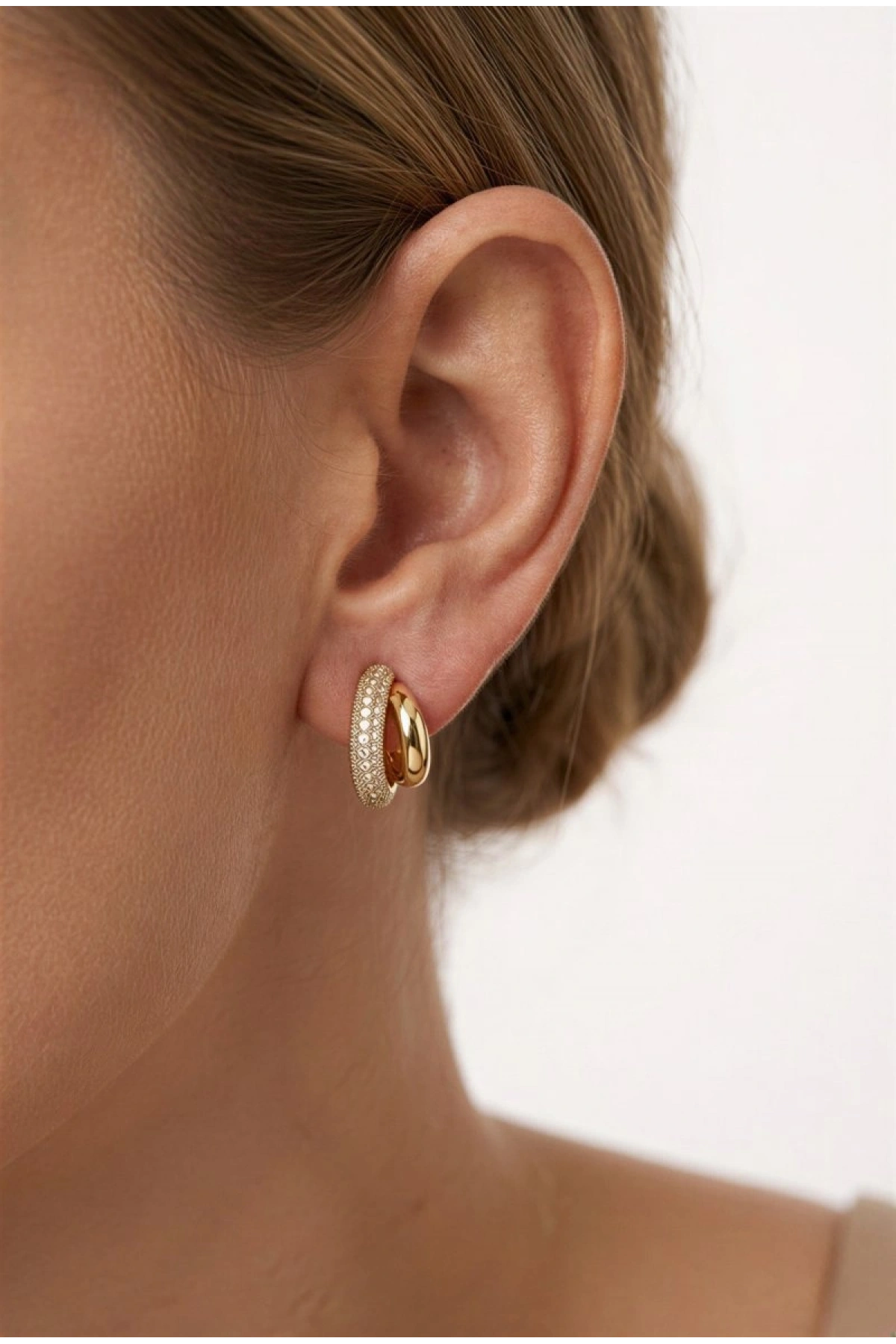 Yarı Taşlı Model Gold Altın Kaplama Küpe