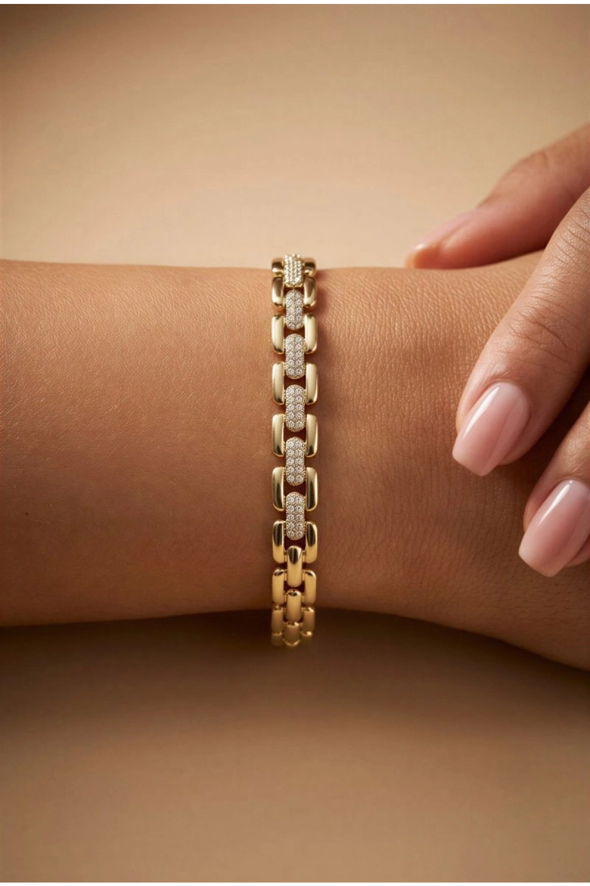 Yarı Taşlı Ray Model Gold Altın Kaplama Bileklik