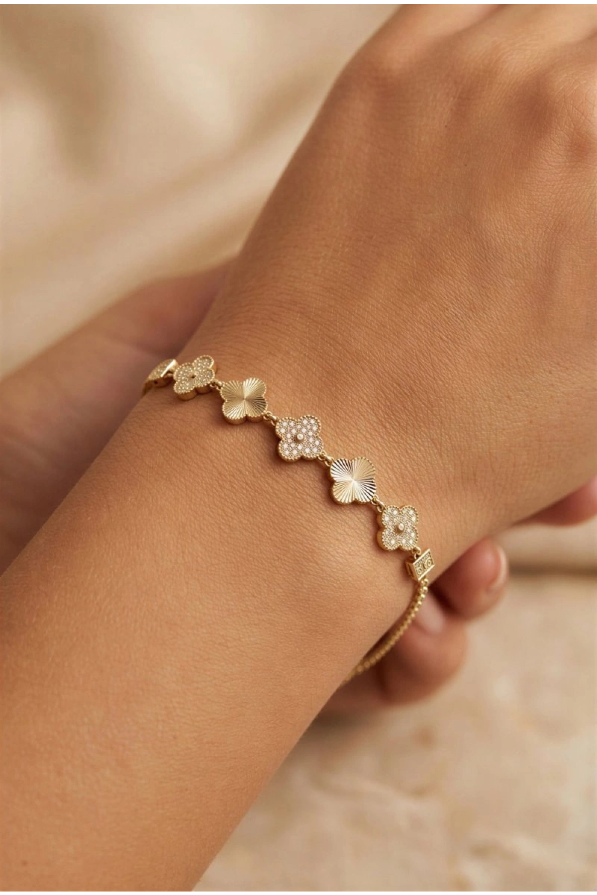 Yarı Taşlı Yonca Model Gold Altın Kaplama Bileklik