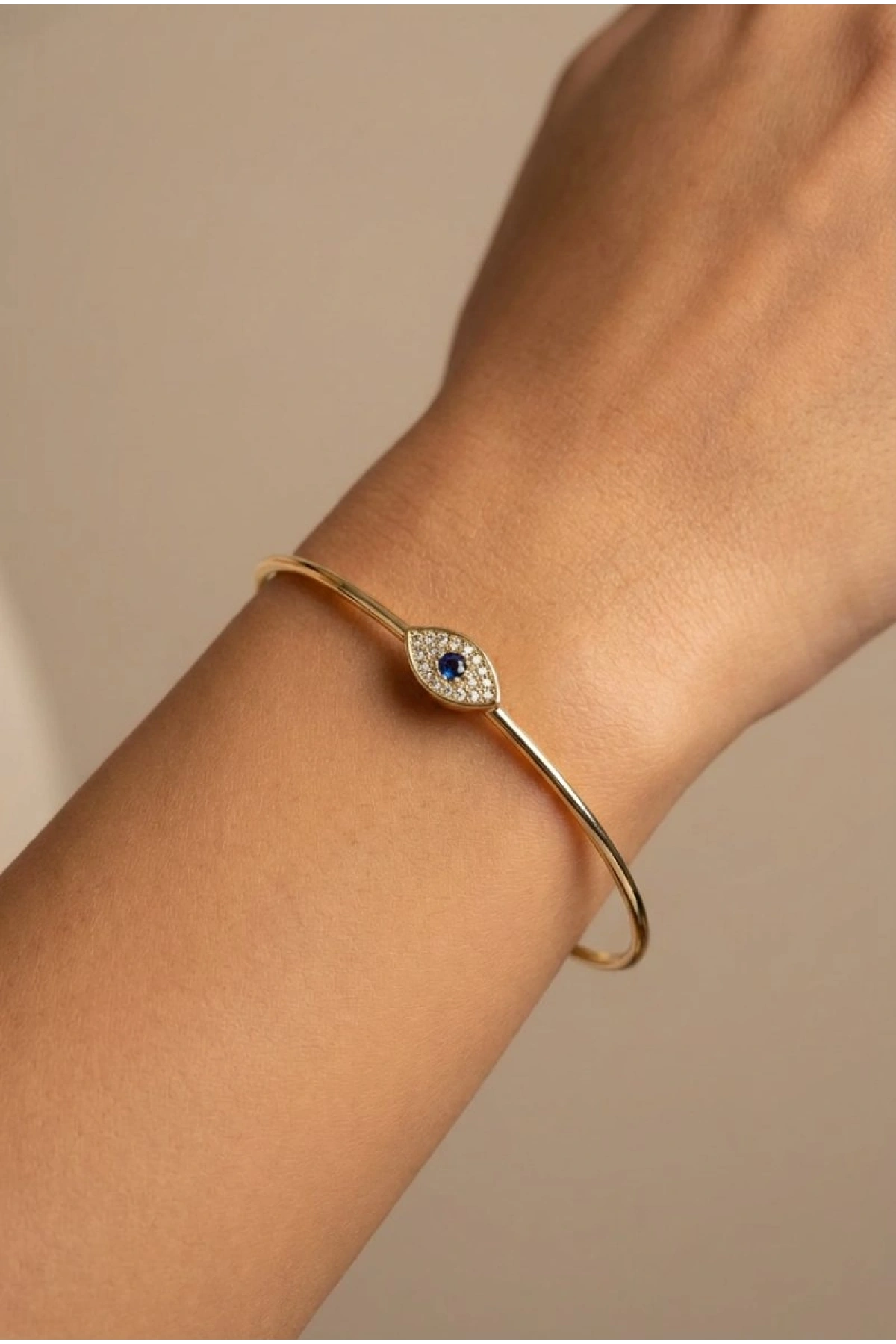 Yay Model Mavi Taş Göz Detay Gold Altın Kaplama Bileklik