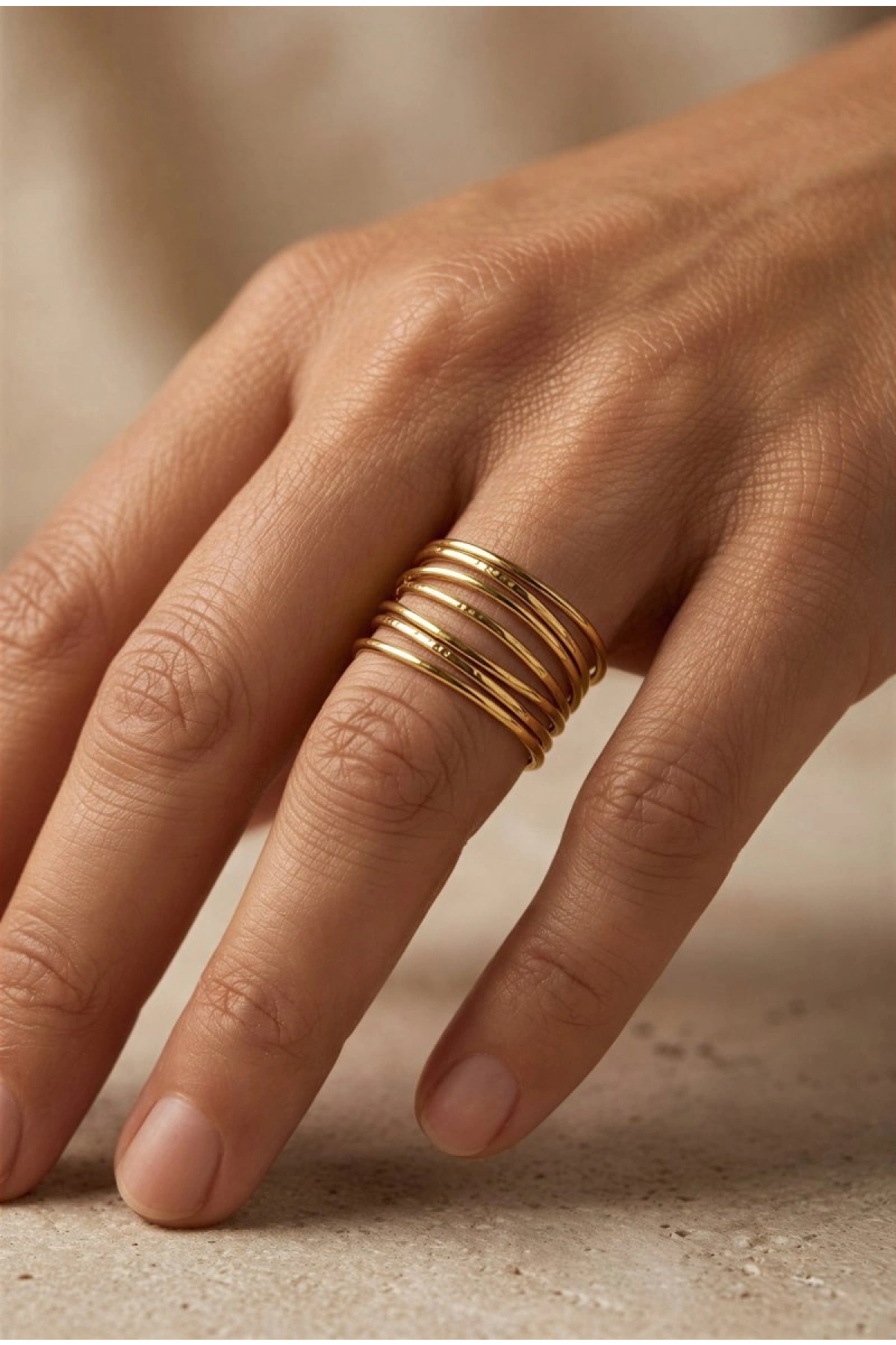 Yedi Sıralı Model Gold Altın Kaplama Ayarlanabilir Çelik Yüzük