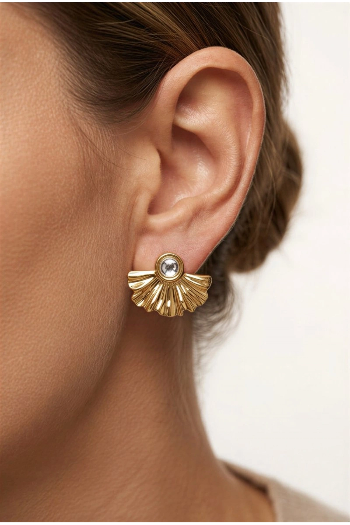 Yelpaze Model Gold Altın Kaplama Küpe